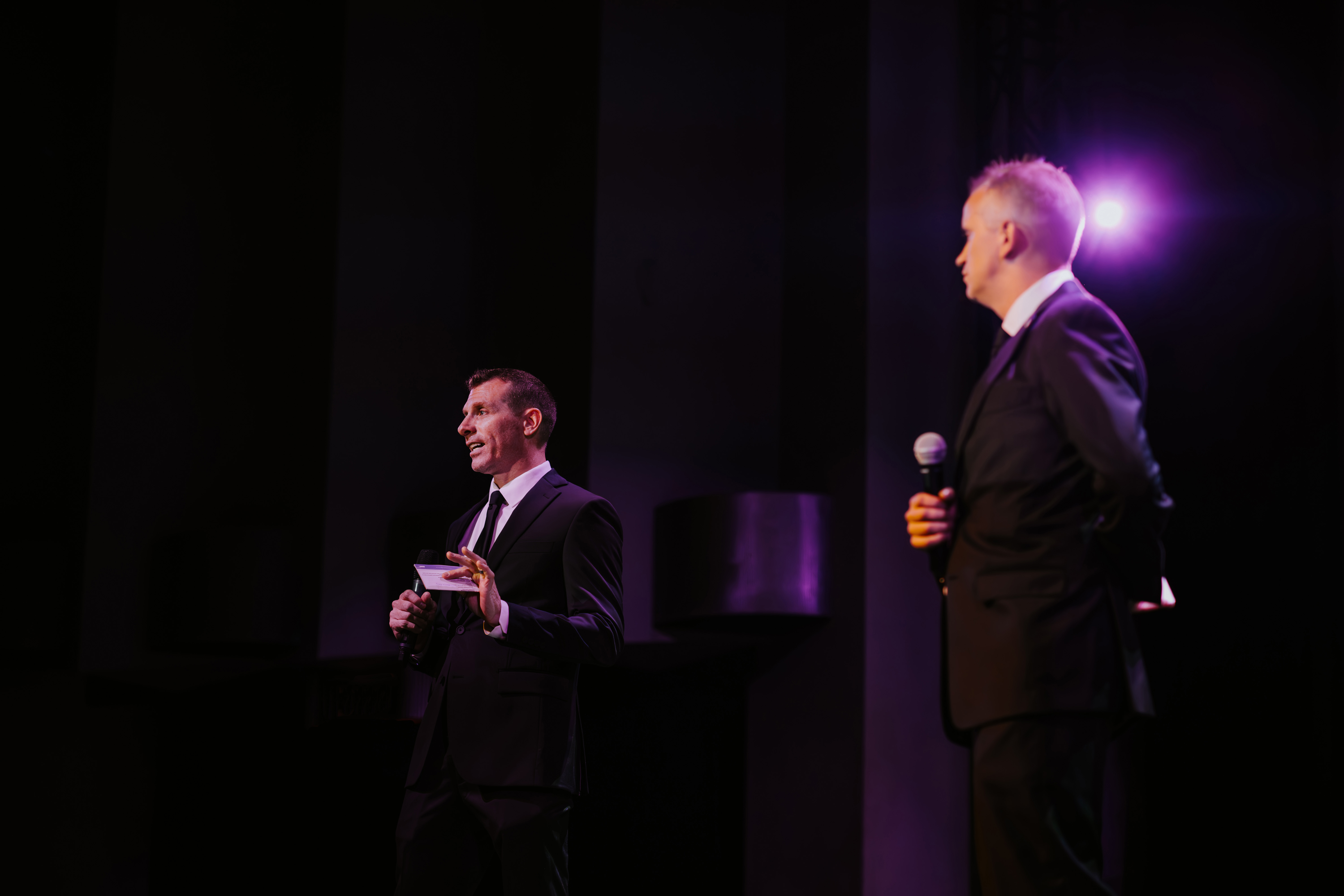 The energy and support was palpable as an audience of 250 guests of family, friends, and industry colleagues celebrated the film’s unveiling. The night started with a lively and bustling cocktail hour with red carpet photos taken by Jenna Dunsmore Photography. Then the lights dimmed and the ladies of the White Ball Productions team introduced John Rokosz and Jeff Balmert, who shared some short words about their mission of storytelling. The film ran for 51 minutes, eliciting laughs, tears, and cheers from the crowd. It was truly an overwhelming audience reaction when John and Jeff took the stage again to thank their cast and crew with custom-made gifts of Grandpa and Shorty military challenge coins and framed movie posters. The party continued across the street for more drinks, food, and networking at Oakmont’s Pub at 333, which was a fun and accommodating after-party venue.
